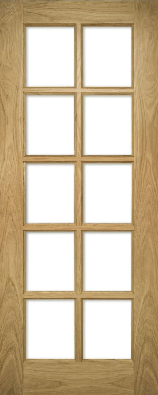The beautiful Bristol Glazed Oak door brings a sense of space and fluidity to a home. Set within specially selected oak veneer, the Bristol’s 10 panes of clear, bevelled glass provide light and open-plan breathability. This door is strong and durable, with a solid core and toughened glass. Use hardwax oil on this unfinished oak door to emphasise the grain and promote its natural characteristics.