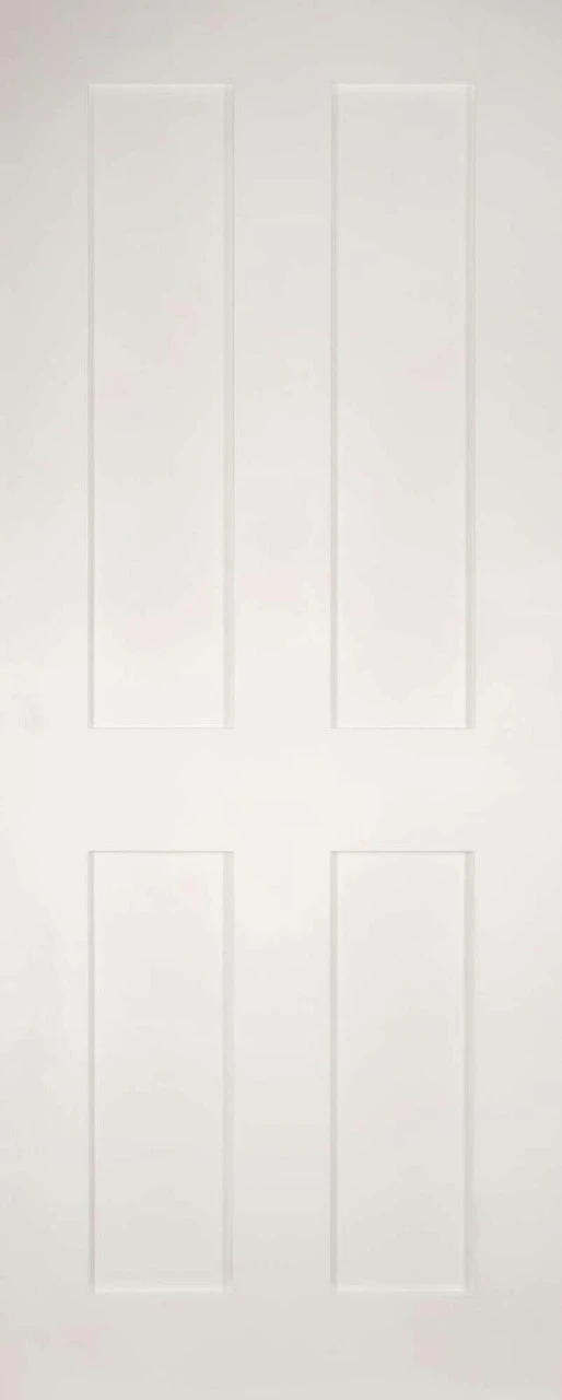Suitable for any room in the home, the Eton Solid White Primed door is simple and chic. The straight-cut edges of its four panels are characteristic of the shaker style, whilst a slight size difference between the two pairs of panels adds a little piquancy to the plainness. The Eton Glazed White Primed door features two panes of clear, toughened glass in place of the top pair of panels.