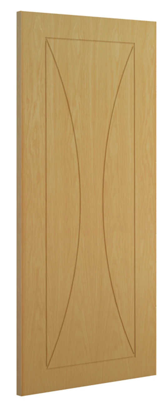 The graceful Sorrento Solid Oak door is all about long, curvy lines, subtle symmetry, and the striking grain patterns of rich oak veneer. The glazed version of the prefinished Sorrento door features beautifully curved panes of clear, toughened glass, while the solid door revels in swathes of warm, natural oak grain.