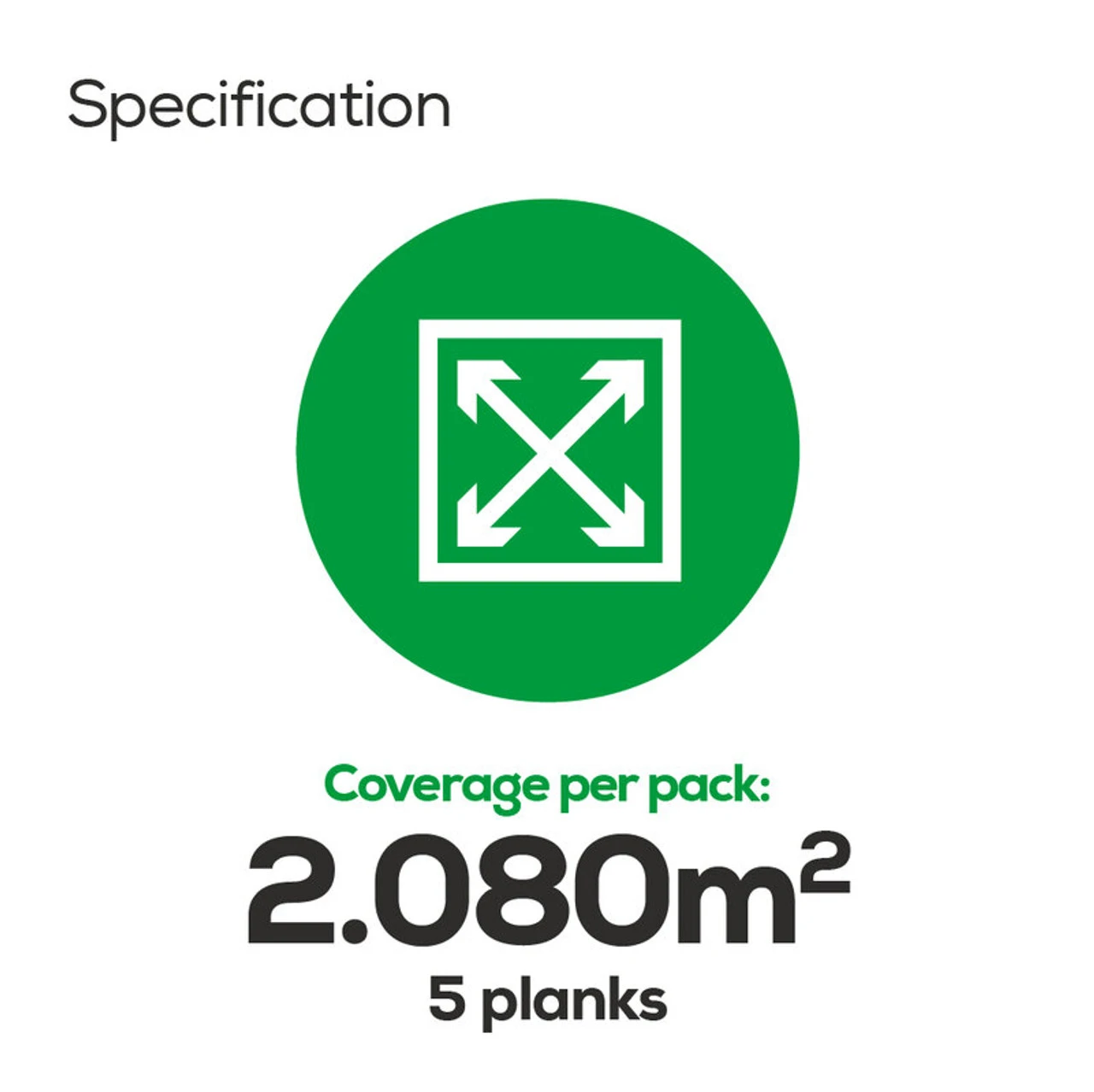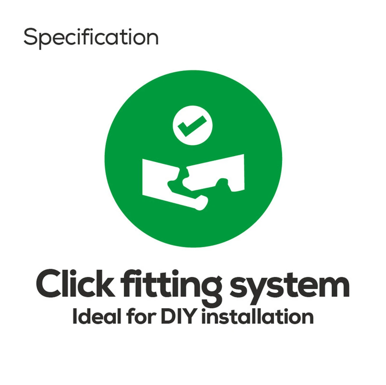 This resilient vinyl flooring reflects the newest designer trends with its concrete character and black colour. It is completely waterproof, extremely functional, and perfect for any living space. V-Grooves on all four sides of the boards add to the classic appearance and feel of a wooden floor. The revolutionary Uniclic Multifit system makes installation a breeze.