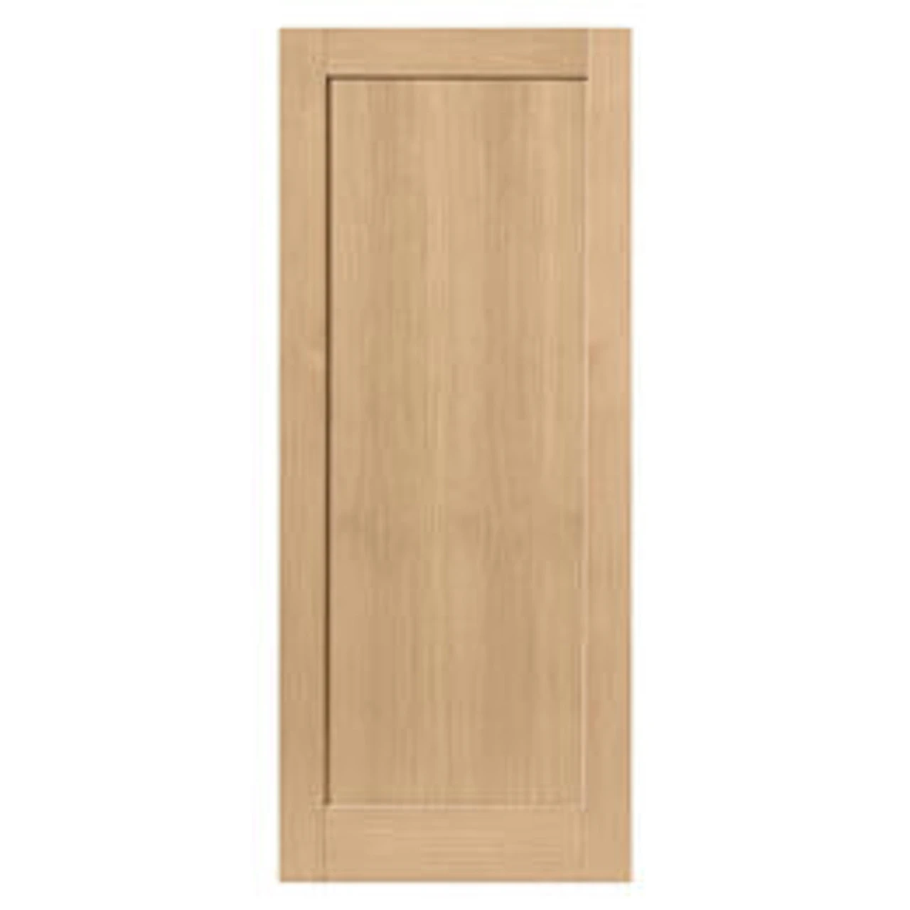 Shaker style oak internal door with one recessed panel, supplied unfinished