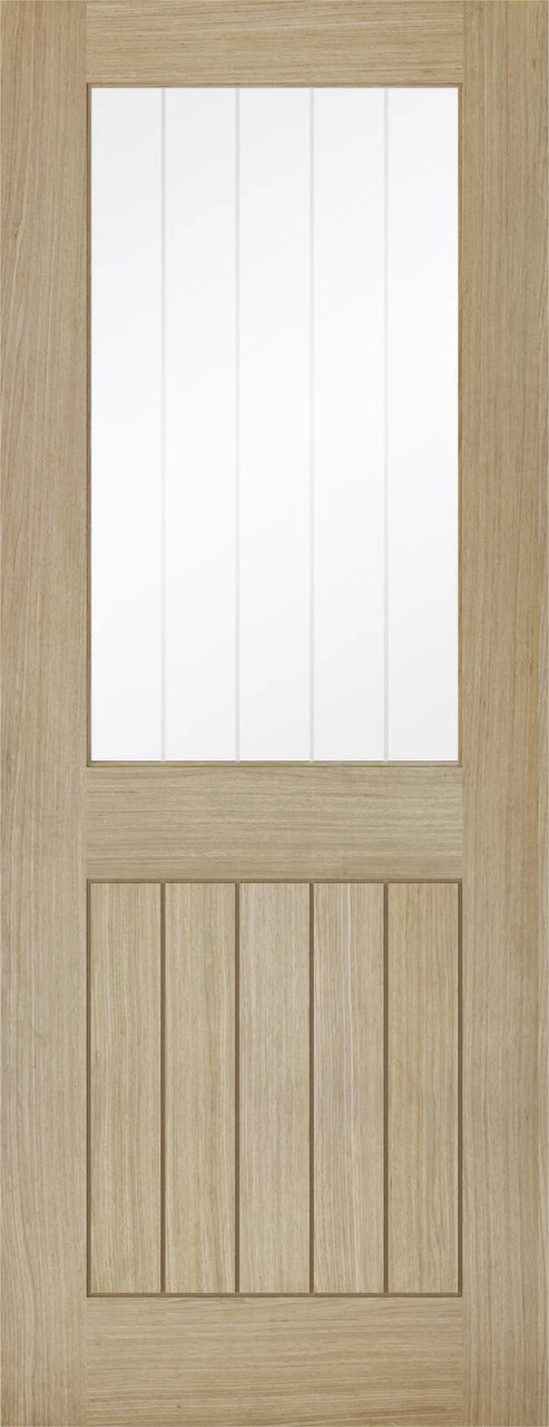 Perfect for modern homes, the pre-finished light grey internal Belize door features traditional looking square cut grooves in a popular five vertical panel design. The cool and contemporary pre-finished light grey colour will look amazing amongst your contemporary interior and with the added benefit of a large clear glazed with frosted lines panel replacing the top half or the door, it will be an internal door which is great for maximising natural light in your home. This door is fully finished and ready to hang.