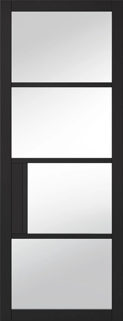 An adaption on our industrial range, the Chelsea features four generous clear glazed panels which are ideal for maximising natural light in your home. Constructed using sleek and slender primed plus black beading and a decorative lock block which is perfect for your matching accessories. The design of this door really stands out in your home. The internal Chelsea door is made for a modern, urbanised home. Please note: this door must be paired with our Manhattan door hardware.