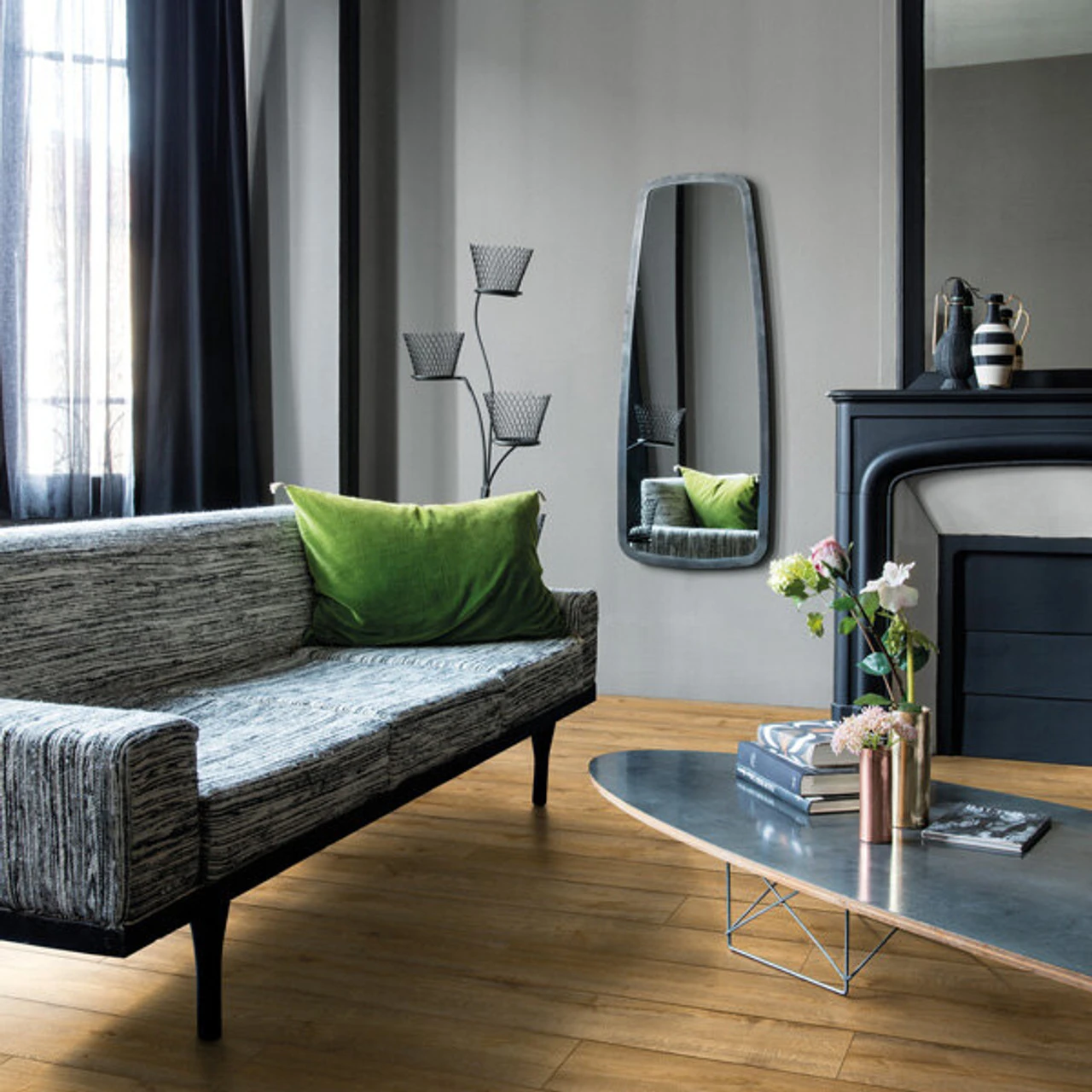 Quick Step’s Pulse Click flooring is a vinyl flooring with a wood look that creates a natural, authentic appearance. It features extra-large planks to help create a wood effect, and is warm underfoot thanks to its design. The vinyl flooring can be used in rooms that are likely to get wet, such as kitchens and bathrooms. It doesn’t require any special cleaning; simply sweep or vacuum it with the rest of your floors.