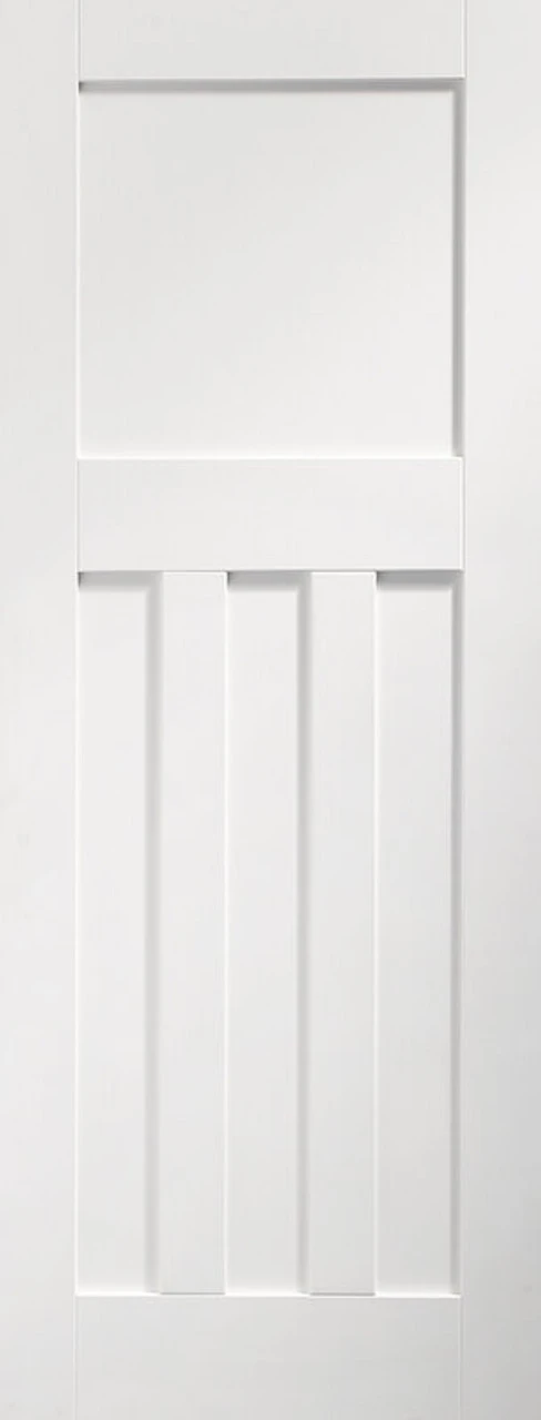 A 1930s inspired white primed door with flat recessed panels. The flat recessed panels in the 1930s inspired white primed DX door helps create a popular and impressive design that can really add value to a property. A Matching glazed door makes up this stylish range.