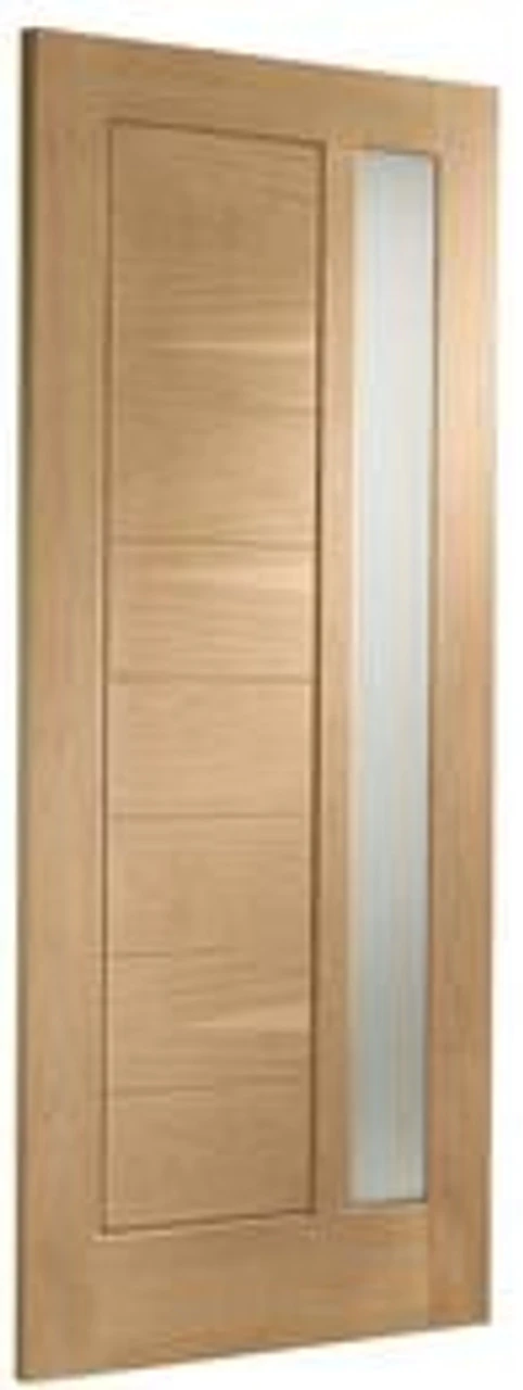 Combining contemporary horizontal panels with a large pane of obscure glass help gives the Modena Hardwood Glazed door a uniquely current look that would complement any modern home. The obscure glazed panel allows daylight to flow into the hallway without compromising any privacy.